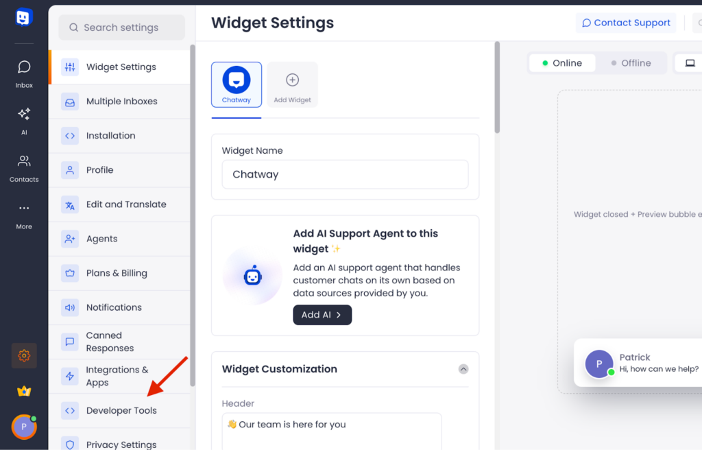 Additionally, you can manipulate the widgets and the agent data using the Chatway API too.